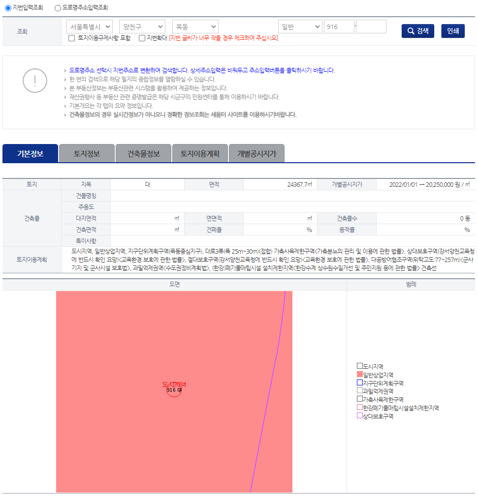 또한, 토지정보, 건축물정보, 토지이용계획, 개별공시지가를 세세하게 확인할 수 있는 사이트입니다.