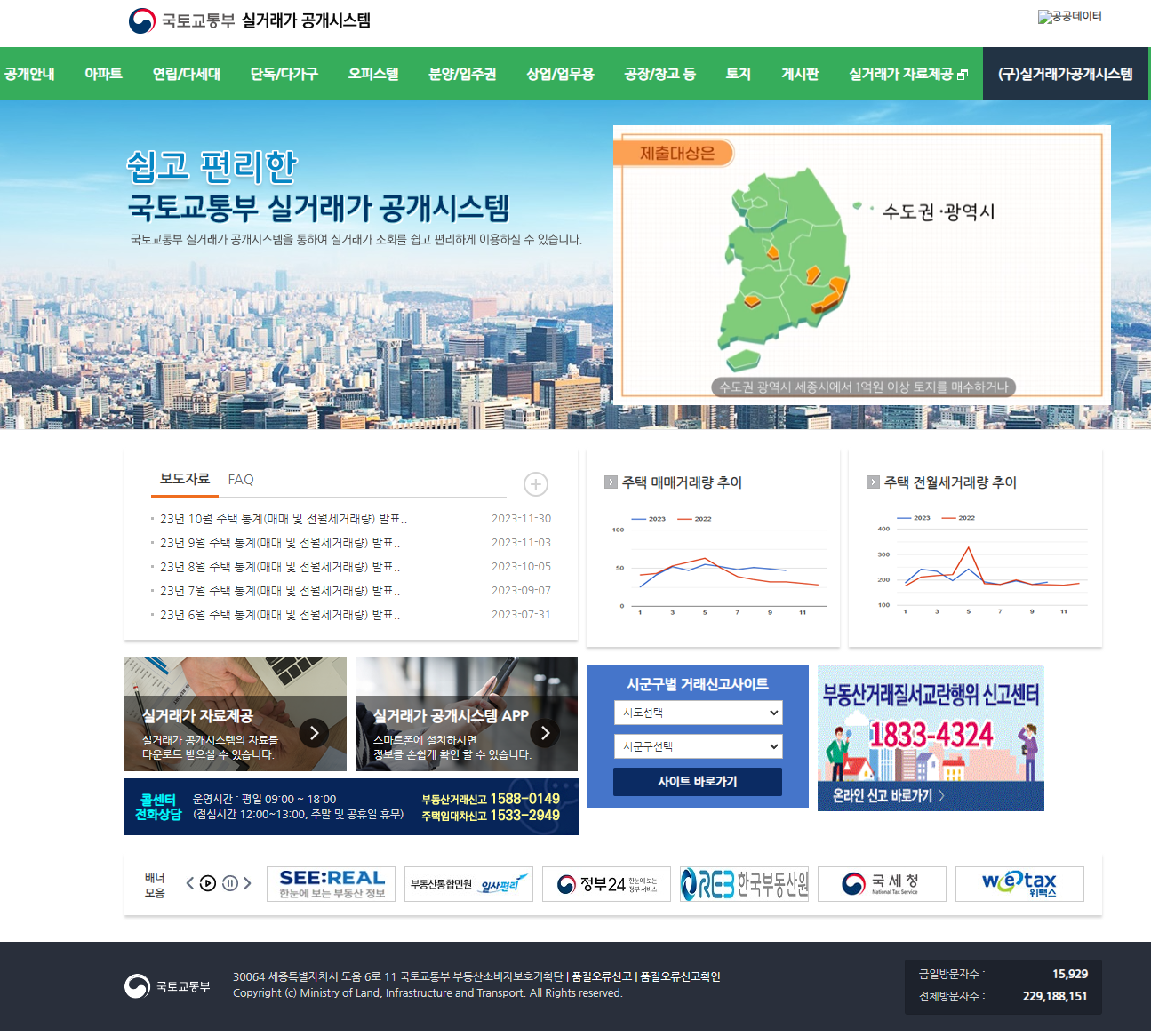 구글에 '국토교통부 실거래가'를 검색하셔서 들어가시거나, 상단에 제가 달아드린 주소로 접속하시면 됩니다.