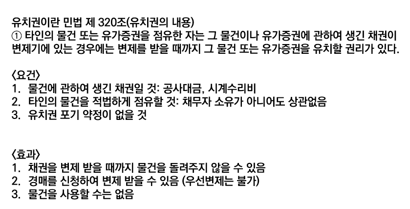 1. 채권을 변제 받을 때까지 물건을 돌려주지 않을 수 있음