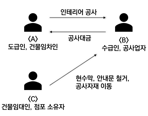 - A는 건물 4층을 다른 용도로 바꾸기 위해 4층 전체를 임차한 후 B에게 인테리어 공사를 의뢰함