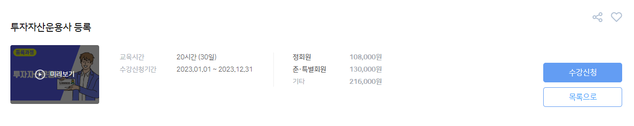 투자자산운용사 시험에 합격하셨다면 언제든 등록교육을 들어도 되기 때문입니다.
