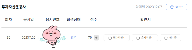 합격 이후에 금융투자협회에 투자자산운용사로 등록하기 위해서는 20시간의 교육을 들어야 한다. 그 교육을 듣고 나면 무슨 투자자산운용사 사전교육이 있던데... 대부분의 합격생들이 그것까지 듣는게 루트인 것 같다.