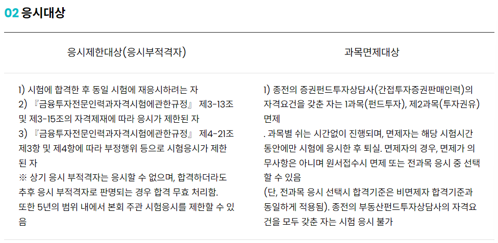 - 『금융투자전문인력과자격시험에관한규정』 제3-13조 및 제3-15조의 자격제재에 따라 응시가 제한된 자